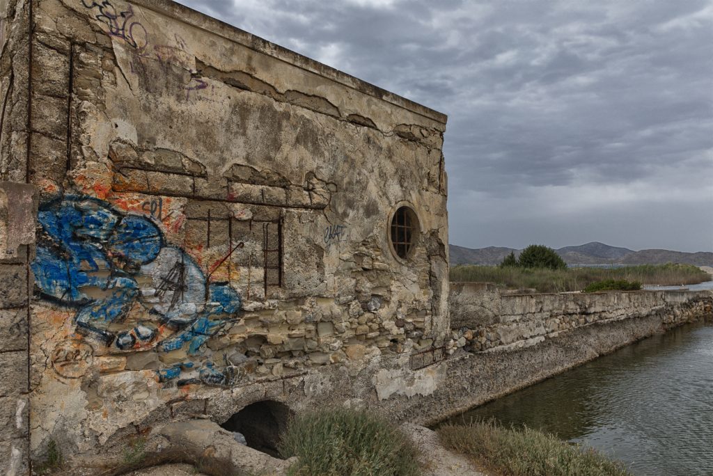 am Sonntag. Zwar hatte es aufgehört zu regnen, aber die Temperatur war auch zurückgegangen und alles zeigte sich grau in grau. Daher beschlossen wir, nach dem Frühstück mit dem Fahrrad zum Salzsee in der Nähe von Tigaki zu fahren, um eventuell Flamingos zu sehen. Leider waren diese zu unserer Zeit nicht anzutreffen, lediglich ein paar Watvögel und Möwen konnten wir beobachten. Für mich waren die alten, zum Teil zerfallenen Gebäude am Seeufer jedoch interessanter. Sie dienen als Leinwand für Graffitis und auch als Rückzugsort für Jugendliche, sowie als Treffpunkt für Liebespaare. Ein Regenschauer zwang uns, in ein Straßencafé in der Touristenmeile von Tigaki zu gehen. Von der ersten Reihe aus hatten wir Spaß, das Treiben zu beobachten. Auf dem Rückweg ins Hotel besuchten wir die griechische Taverne „Ampeli”, in der wir fast nur mit Einheimischen typisch griechisches Essen genießen konnten. Satt und zufrieden gönnten wir uns schließlich an der Hotelbar noch einen Absacker und ließen den Tag entspannt ausklingen.