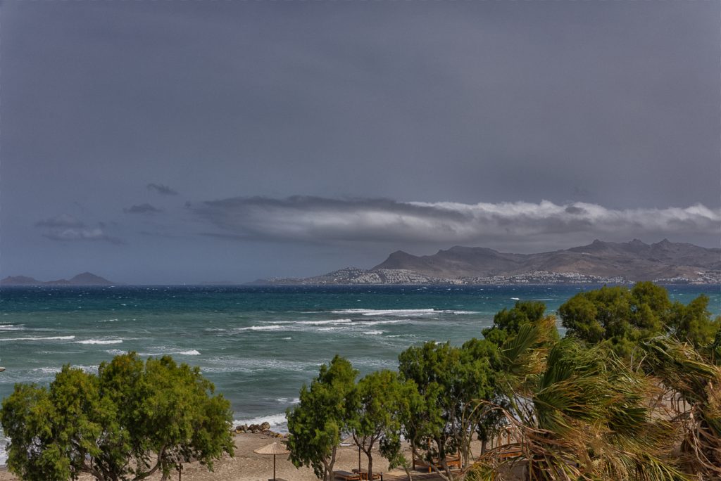 Ich wollte sie eigentlich völlig ruhig und entspannt verbringen. Meine Frau hingegen wollte gleich nach dem Frühstück Fahrräder besorgen und nach Kos-Stadt an den Hafen fahren. Eine gute Idee, denn im Meer oder am Pool können wir ja immer noch baden. Da wir letztes Jahr mit den Rädern und der Beratung von „Kakivelis Bikes“ sehr zufrieden waren, steuerten wir den Laden auch gleich wieder an. Wir wurden uns schnell mit dem Preis einig und mieteten für drei Tage schöne, stabile E-Bikes. Gemütlich radelten wir ins Zentrum von Kos-Stadt, flanierten um den Hafen, besuchten unsere Eisdiele, hingen in einer gemütlichen Lounge ab und genossen unseren ersten Tag. Endlich wieder Urlaub! Zurück im Hotel genossen wir unsere Hängematte und die Liegen auf unserer Terrasse und ließen die Seele baumeln. In der Nacht zog Sturm auf und der Regen peitschte gegen unsere Terrassentür. Waren das ersten Anzeichen für turbulente Tage auf Kos?