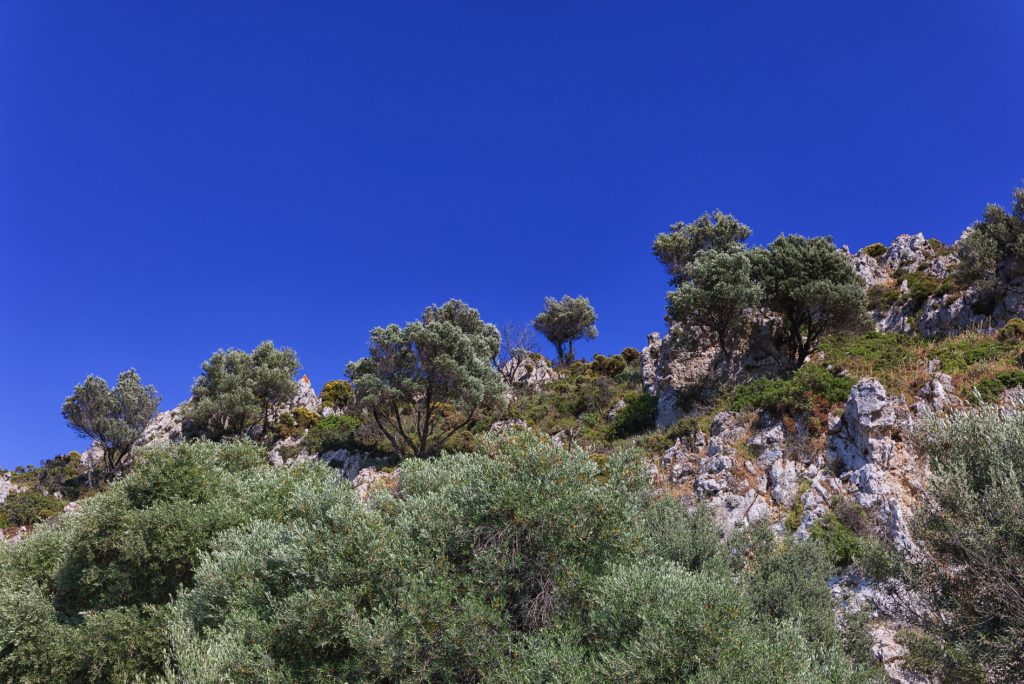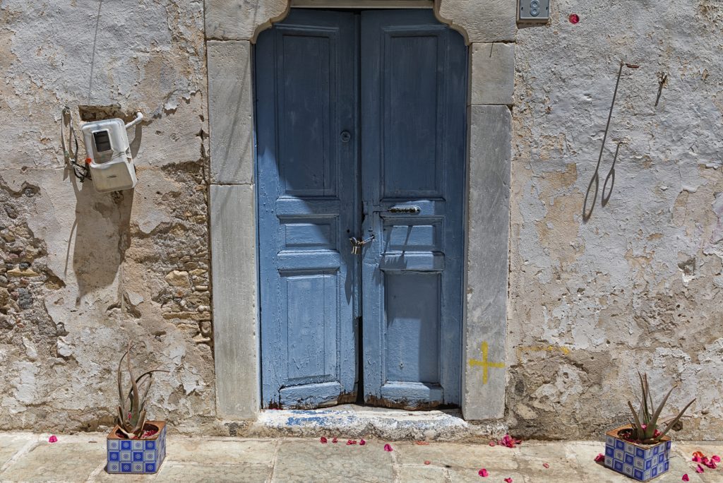 Auf der Rückfahrt von Kefalos schickt uns das Navi über eine unscheinbare Straße voller Schlaglöcher, vorbei an Industrie- und Abfallentsorgungsbetrieben, in die Berge. Es wird immer grüner und bald erreichen wir unser nächstes Ziel, das malerische Dorf Pyli. Pyli liegt im Inneren der Insel und ist für seine schöne Lage und historische Bedeutung bekannt. Es liegt in einer fruchtbaren Gegend, umgeben von grünen Hügeln und Bergen, und ist somit ein ruhiger und charmanter Ort. Das Dorf ist bekannt für seine traditionellen Tavernen, in denen man die lokale Küche genießen kann, sowie für die antike Festung, die einen grandiosen Ausblick bietet. Diese besuchen wir heute jedoch nicht, da wir vor dem großen Ansturm zum Sonnenuntergang nach Zia wollen.