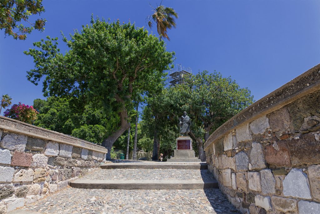 Das Asklepieion, eine der Hauptattraktionen der Insel Kos, liegt etwa sieben Kilometer von unserem Hotel entfernt auf einer Anhöhe über Kos-Stadt. Es ist eine der bedeutendsten antiken Heilstätten des Altertums und ein wichtiges archäologisches Monument, das dem Heilgott Asklepios gewidmet ist. Das Asklepieion von Kos wurde im 4. Jahrhundert v. Chr. gegründet, wahrscheinlich kurz nach dem Tod des berühmten Arztes Hippokrates, der auf Kos lebte und wirkte. Die terrassenförmig angelegte Anlage war zugleich Tempel, Heilzentrum und medizinische Schule. Von dem dorischen Tempel auf der zweiten Terrasse, der dem Gott Asklepios gewidmet war, stehen heute nur noch einige Säulen. Heute bewundern Besucher die verschiedenen Terrassen, Tempelreste und römischen Bauten, sowie die beeindruckende Aussicht auf das Meer und die Türkei. Die Tour hat Spaß gemacht und war auch mit dem Rad leicht zu bewältigen. Auf der Terrasse des H2O-Hotels hinter dem Hafen stießen wir mit einem Glas Sekt auf 30 Jahre an.