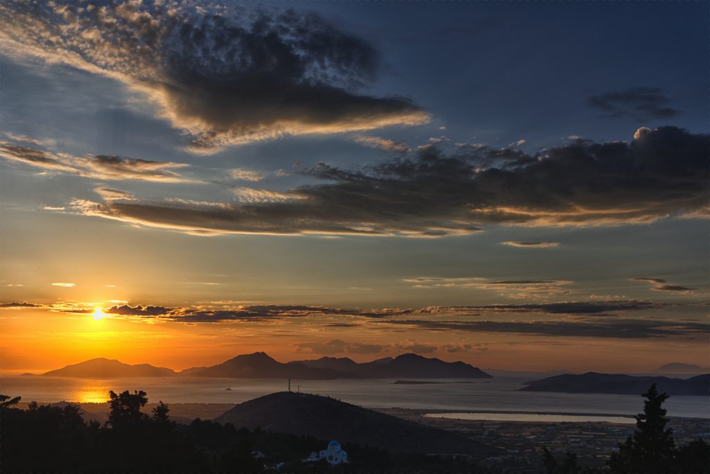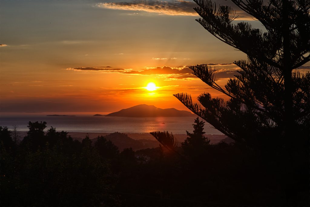 Als wir durch die schmalen, gepflasterten Gassen von Zia fuhren, die von unzähligen Souvenirläden gesäumt waren, konnten wir nicht ahnen, was in etwa zwei Stunden hier los sein würde. Ein Einheimischer, den wir letztes Jahr kennengelernt hatten, sagte uns, welchen Parkplatz wir anfahren und welche Taverne wir besuchen sollten. Wir saßen in der ersten Reihe auf einer Terrasse und ließen es uns schmecken. Der Ausblick auf die Nordküste und die Türkei ist grandios. Griechisches Essen im Sonnenuntergang – ein wahrhaft schönes Erlebnis. Von oben sehen wir die Touristenbusse, die sich den Berg hochquälen, ihre Besucher ausspucken und Parkplätze im Wald anfahren. Bevor die Sonne komplett untergegangen ist, machen wir uns auf den Rückweg in unser Hotel. Dort mischt uns Kontessa, unsere Barfrau, leckere Margaritas, die wir nach diesem ereignisreichen Tag verdient haben.